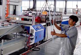 公司致力于PVC結(jié)皮發(fā)泡板設(shè)備的研發(fā)制造,具備多個(gè)系列多種型號(hào)的設(shè)備供不同用戶選擇。